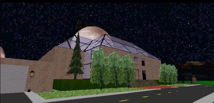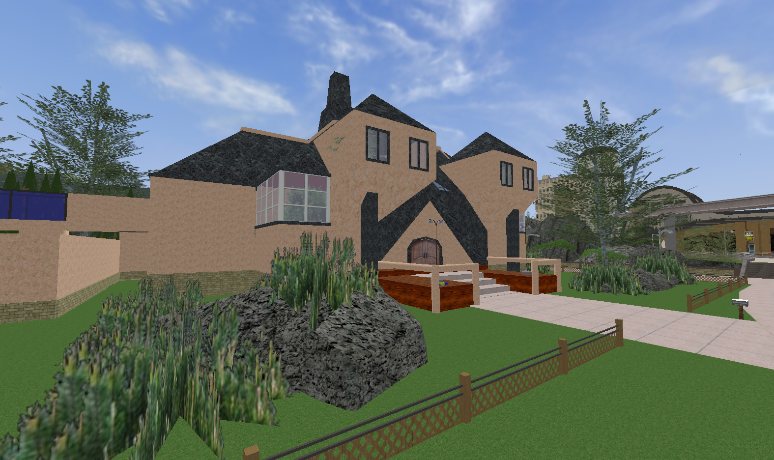 The Manor features a large 2 car garage, a pool (which houses the 2001 Best Website CY Award), and an xtop.rwx on top of the roof which is an extremely lazy way to finish a roof top off.